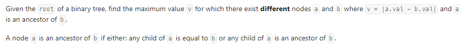 https://leetcode.com/problems/maximum-difference-between-node-and-ancestor/description/