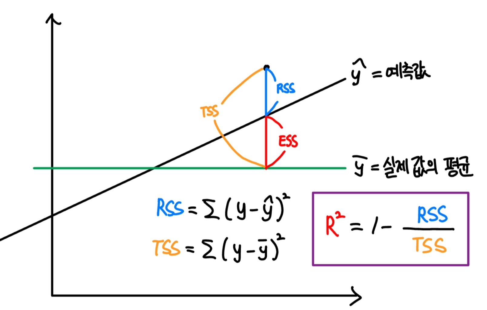 회귀 분석에서 사용되는 중요한 평가 지표 중 하나입니다. 이는 회귀 모델이 데이터를 얼마나 잘 설명하는지를 나타낸다.