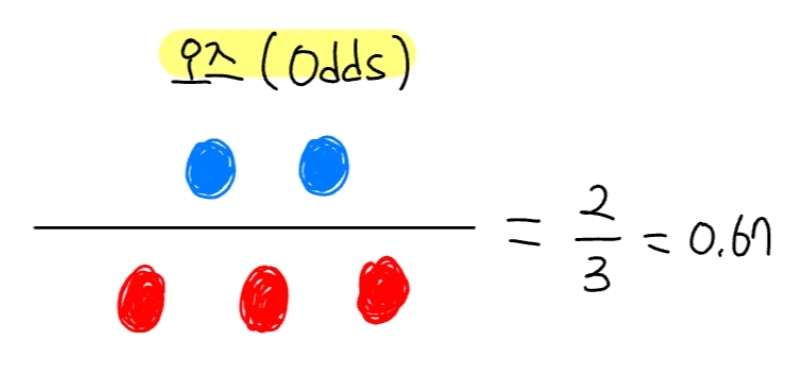 - 예를 들어, 오즈가 2:3인 경우와 확률이 2/5인 경우의 차이를 설명합니다.