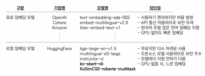 사전학습 임베딩 모델에는 대표적으로 OpenAI에서 제공하는 ada모델과, HuggingFace의 모델들이 있습니다. 사용목적과 요구사항에 따라 적절한 임베딩을 고르는 것은 RAG의 가장 중요한 부분입니다.